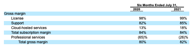 To better understand each HashiCorp revenue effort, we need to examine them from a gross-margin perspective. Given that the company is calling its largest revenue line item “Support,” you might be worried that it’s a poor revenue category. Let’s find out: