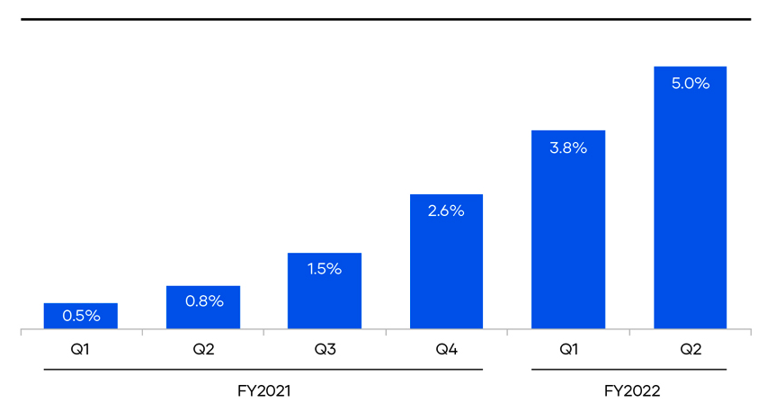 The following chart tracks HCP revenues as a portion of total HashiCorp revenues over time: