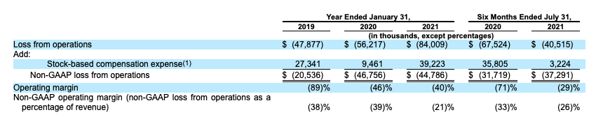 So, another enterprise software company that is torching cash? Not precisely. In the six months ended July 31, 2021, HashiCorp posted net losses of $40.5 million, down from its year-ago net loss of $67.5 million. It’s good to see the company not only lower its net losses as a percentage of revenue but also cut the number itself.