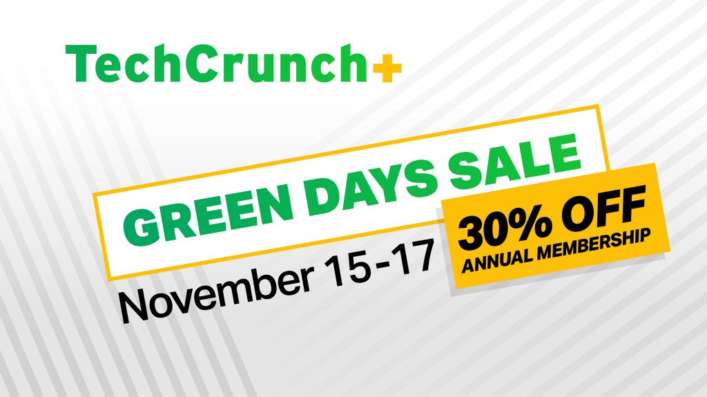 The holiday season is upon us, and that means big savings on TechCrunch+ membership. From now until November 17 TechCrunch readers can save 30% on annual and two-year TechCrunch+ memberships through the Green Days sale.