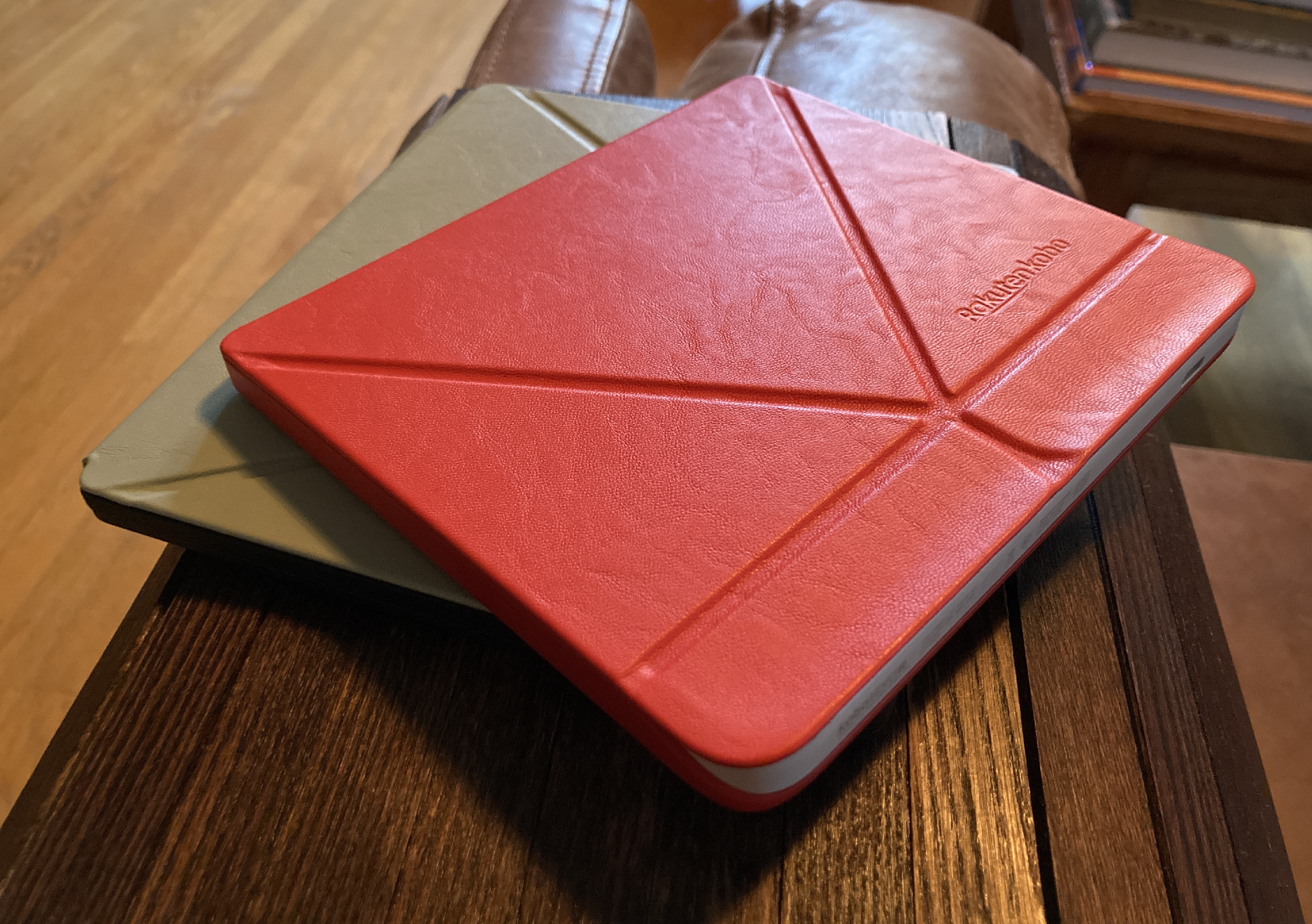 On the smaller Libra 2, though, I loved the cover. It turned the somewhat plasticky device into a much more premium-feeling one, and the red color is actually quite attractive (plus the power button is accessible). Not only that but the fold-out piece is great for both setting it down and holding it — giving a bit more shape to it, like folding back the first half of a paperback. The recessed screen (I prefer a flush one) is protected from grime as well. While I still prefer the Boox’s ultra-compact, ultra-smooth design, the Libra 2 quickly ascended to second place for times when I’m not so worried about the space it takes up.