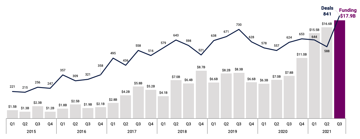 But what makes Q3 2021 more than just another quarter of strong fundraising results from AI startups is a dramatic rise in deal volume.