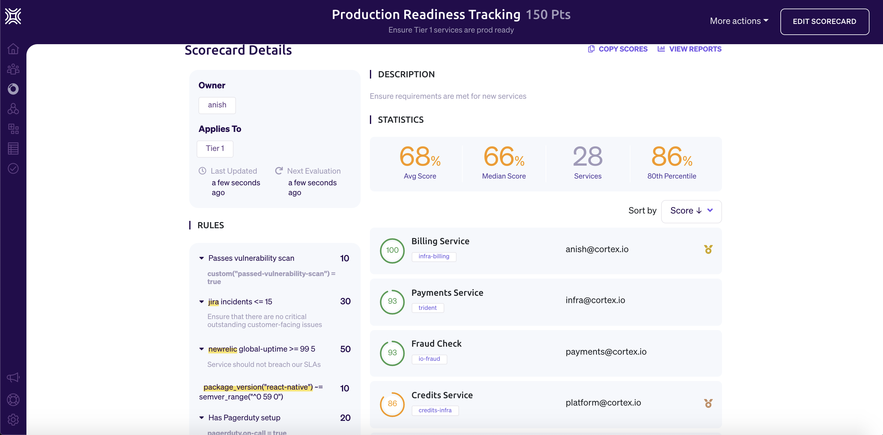 “Engineering leaders have very limited visibility into which teams are performing well or need additional resources across critical initiatives and reliability, security and just overall adoption of best practices,” said Cortex co-founder and CEO Anish Dhar. “On the other hand, you see teams like SRE, security and platform, who are still stuck using Excel spreadsheets, tracking hundreds, sometimes thousands of services across several teams. How do you actually align these teams and drive consistency?”