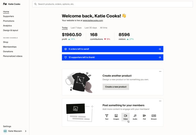 Fourthwall announced today that it raised $17 million from investors including Lightspeed Venture Partners, Initialized Capital and Alexis Ohanian’s Seven Seven Six. Like Memberful, a subsidiary of Patreon, Fourthwall offers a white-label website with built-in tools for setting up merch stores, membership programs, tipping and more. When fans buy something, there’s an integrated Cameo-like feature that lets creators send personalized video and audio messages as a thank you. Fourthwall partners with manufacturers to offer more than 200 different types of products that creators can develop to sell through their website, which creators can control down to the code itself.