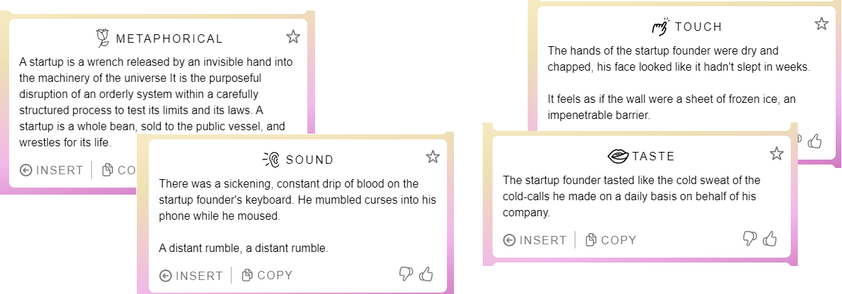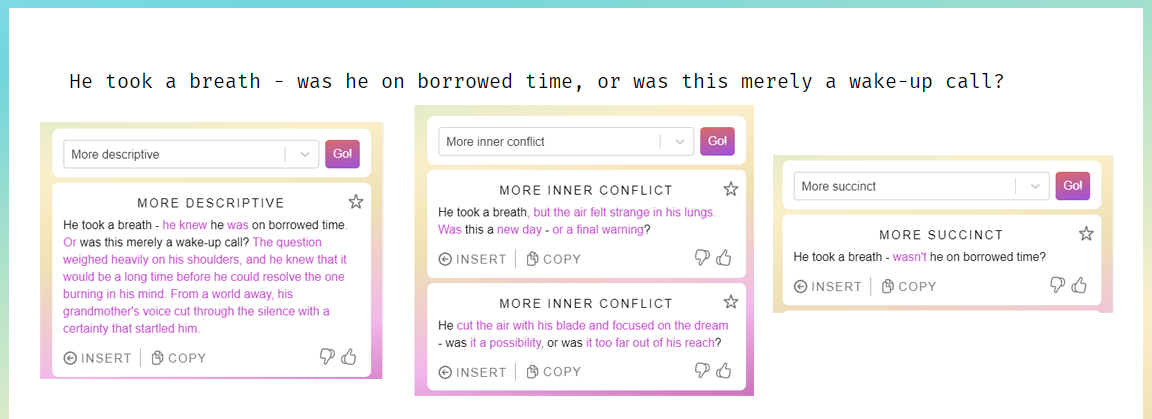“We wanted to give you someone who’s almost as good as a human reading partner, to bounce ideas off of. Beyond that, I think as we talked to users, especially people in the entertainment industry such as screenwriters, we discovered there was a specific need. They have a lot of rote tasks that they don’t like doing: they might have a screenplay they’ve written and they might need to generate a one-page treatment, a three-page treatment, etc. It’s all very specific industry stuff, but it’s pretty easy for an AI to do. It’s not very creative work, and a tool like Sudowrite saves them hours and hours of the worst kind of work that they have to do. I think there’s a lot of opportunities like that, but the core product is really about inspiration provocation, helping you stay in flow.”