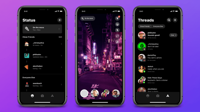 Threads was introduced in 2019 as a companion app to Instagram shortly after the company shut down its other standalone messaging app, Direct. Instead of focusing solely on the inbox experience, Threads was built as a “camera-first” mobile messager designed to be used for posting status updates and staying in touch with those you designated as your “Close Friends” on Instagram. It later expanded to all users to message everyone, but failed to gain traction.