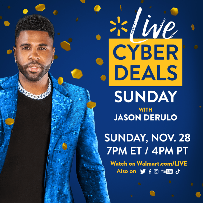 The livestream will begin at 7 PM ET on November 28, 2021, and will allow Walmart customers to shop from Twitter as well as a number of other platforms, including Walmart.com/live, and the retailer’s Facebook, Instagram, TikTok and YouTube accounts. Musician-turned-creator Jason Derulo will host the livestream, where he’ll introduce the audience to deals in electronics, home goods, apparel, seasonal décor and more during a 30-minute variety show. Surprise special guests will also drop in, says Walmart.
