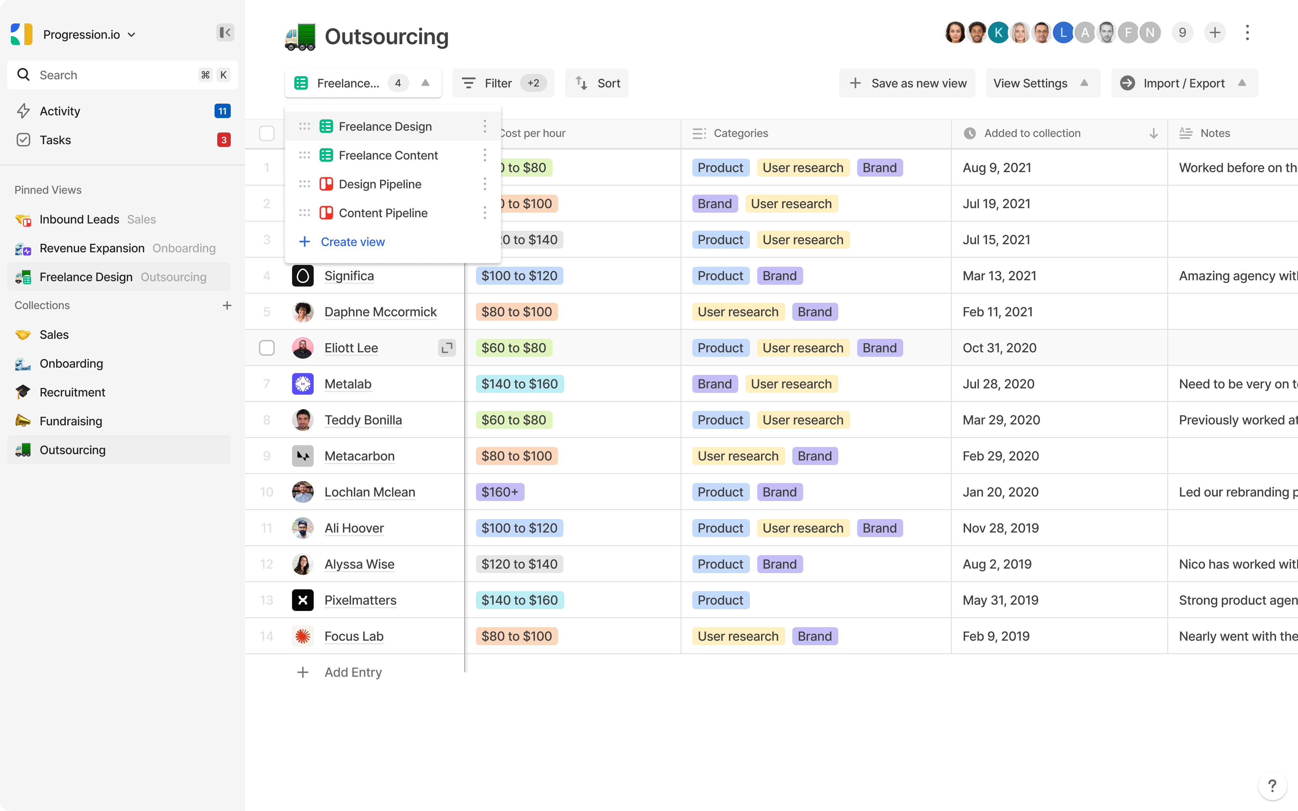 It gets particularly interesting when you start building collections. A collection is a list of contacts for a specific project. For instance, you can create a collection with all your investors, another collection with your sales funnel, another collection with reporters you know, etc.
