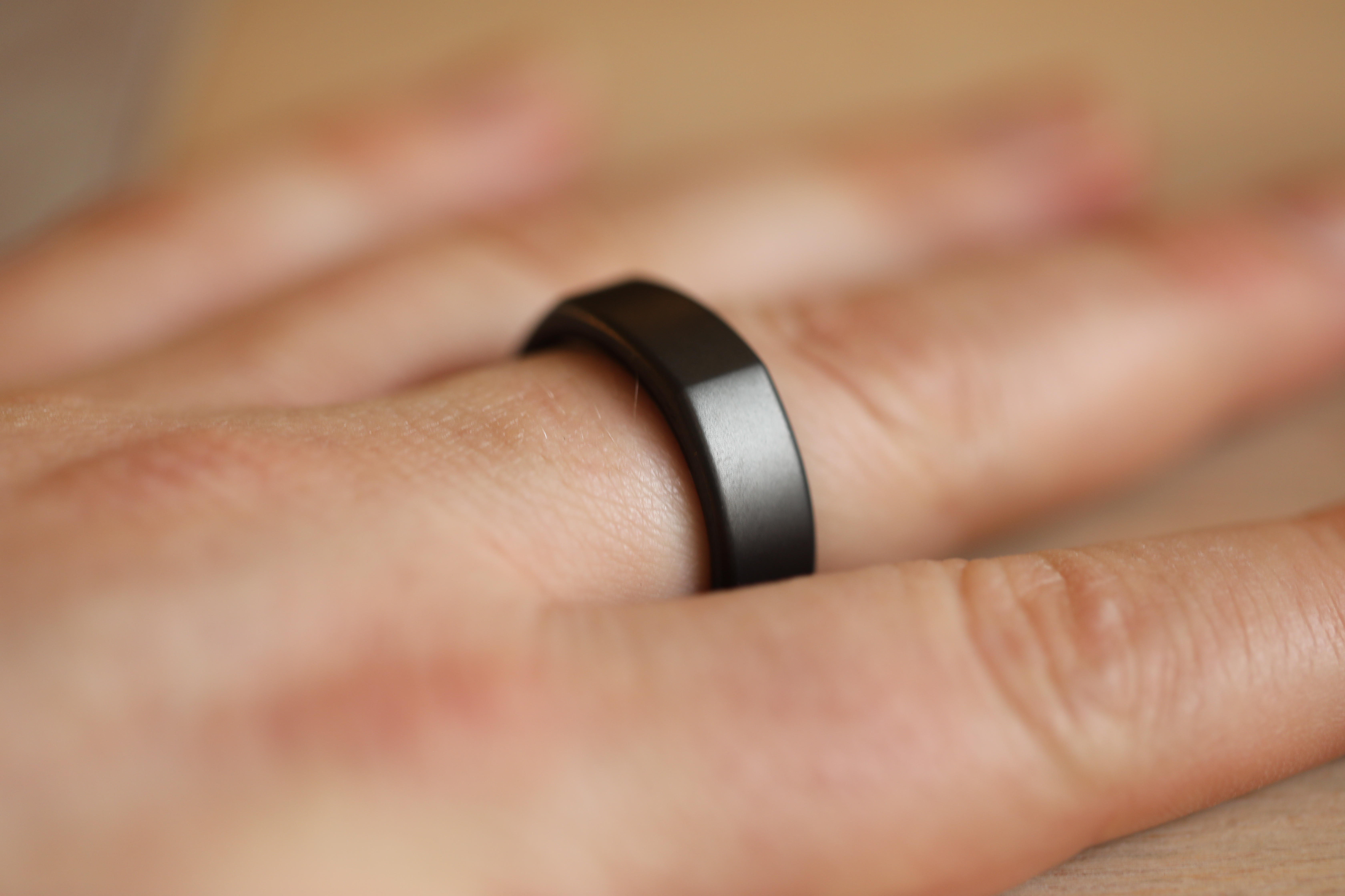 If you don’t know your ring size, the company will send a sizing kit à la Warby Parker, featuring a number of plastic dummy rings. You’re encouraged to wear one around for 24 hours, as the human finger has a way of swelling and contracting during the day. I chose my size and color (a matte black) and waited. Ultimately, I found the final product to be a bit looser than its plastic counterpart, but the ring stayed on fine. And, indeed, I found that the exact fit tended to evolve over the day.