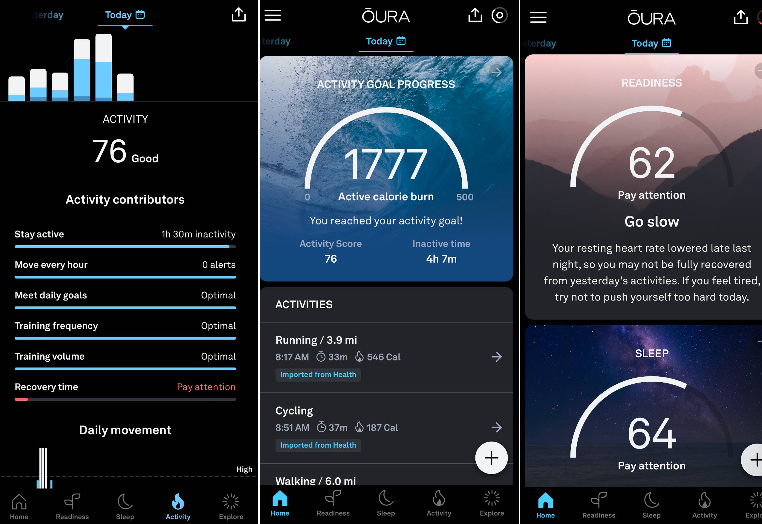Things like recovery and readiness tend to be overlooked by these sorts of devices. Oura describes the latter thusly:
