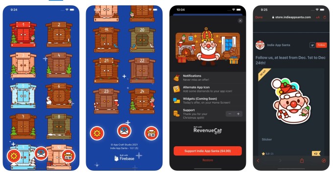 The new iOS app presents an advent calendar-like interface where each day you can tap to open a door and reveal a new deal on an indie developer’s app. The app will work from December 1 through December 24, and is a free download (with the option to pay to support its development).