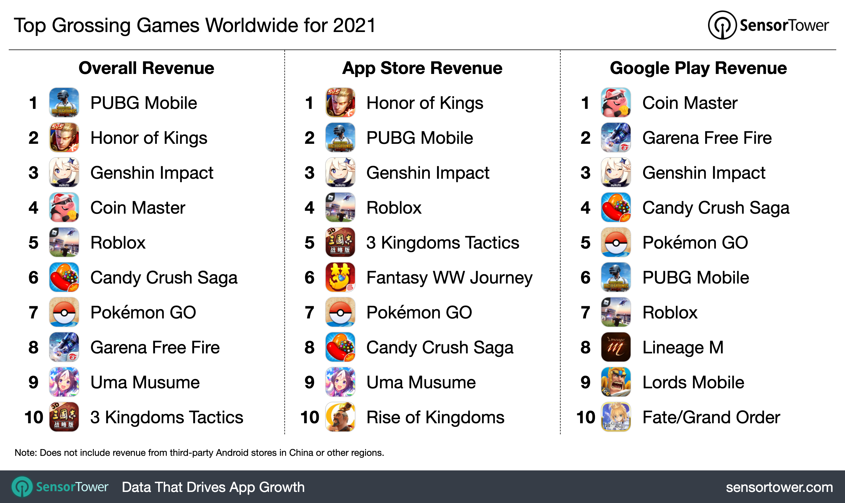 On the App Store, games will account for $52.3 billion in consumer spending this year, up 9.9% from 2020. The gaming market on iOS is led by Tencent’s Honor of Kings, which generated $2.9 billion on iOS, up 16% from the $2.5 billion it saw last year.