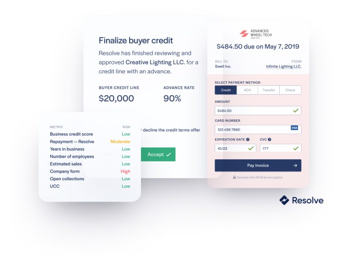 Unlike Affirm — which is more focused on the consumer — Resolve is exclusively focused on business-to-business billing by automating the process of billing and purchasing on credit. What it’s doing is basically allowing businesses to defer payments digitally and on better terms than what they’ve seen historically via an automated underwriting process, the company claims. This, it says, can lead to faster invoice payment and thus, improved cash flow.