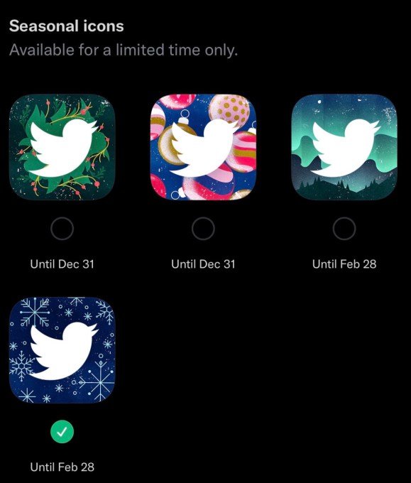 Some apps also offer custom icons for their paying customers, but Twitter is taking things even further. Although its Twitter Blue subscription doesn’t just offer alternative icons, it’s making seasonally themed icons, too. Its winter collection is rolling out now.