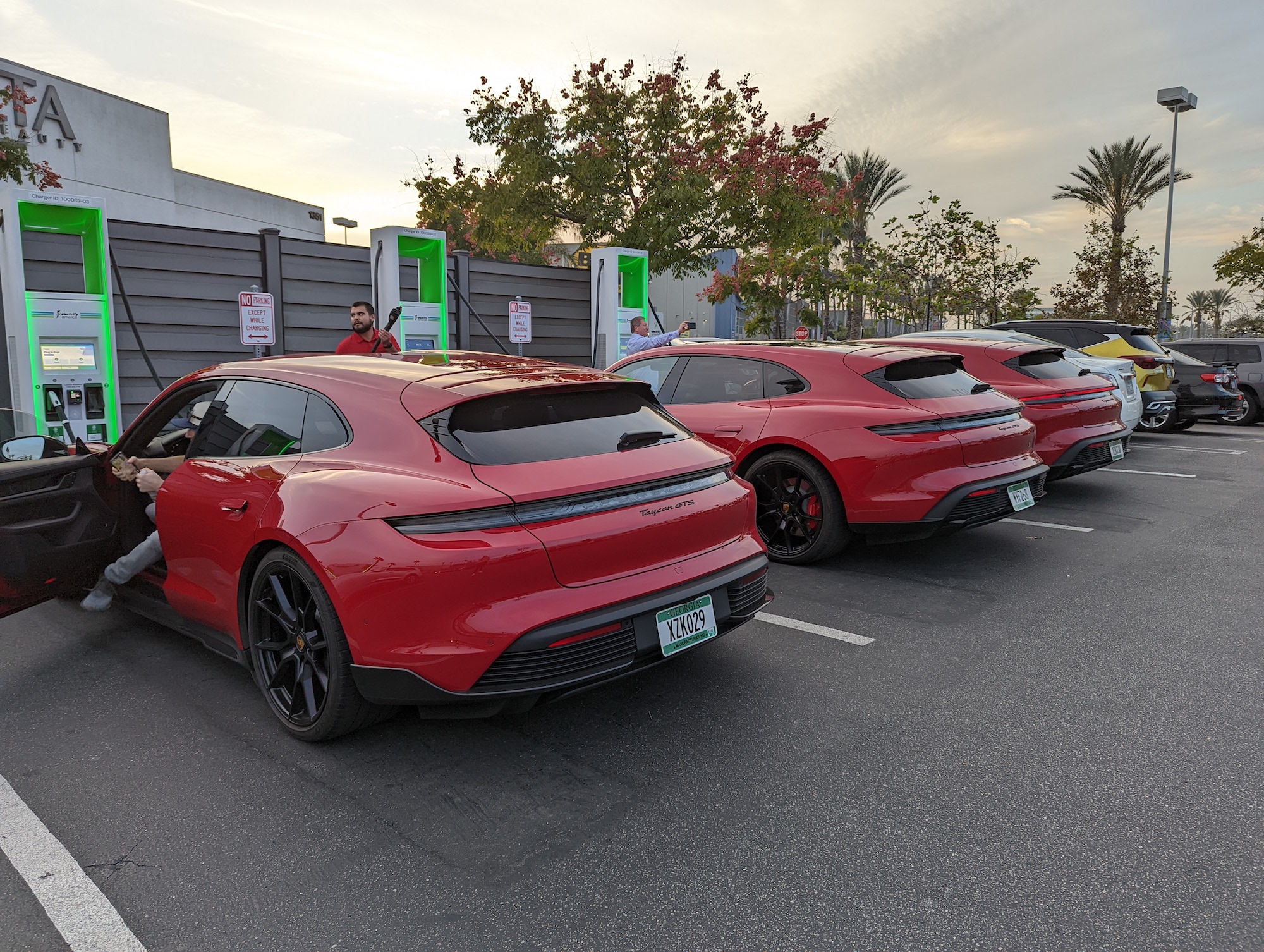 On a Saturday night, the place was absolutely packed with shoppers and EV chargers alike. There was only one DC fast charger, and according to the Porsche rep manning the charger to help journalists plug in, it had been out of service almost all day. When I arrived a Ford Mustang Mach-E was charging at the spot, so I pulled into one of the others that were vacant. To no EV owner’s surprise, the charger wouldn’t initiate for my GTS Sport Turismo. I tried three other chargers in the row, before finally returning to the DC fast charger, which, miraculously, connected and quickly charged my Taycan GTS Sport Turismo from 25% to 80% in just 20 minutes.