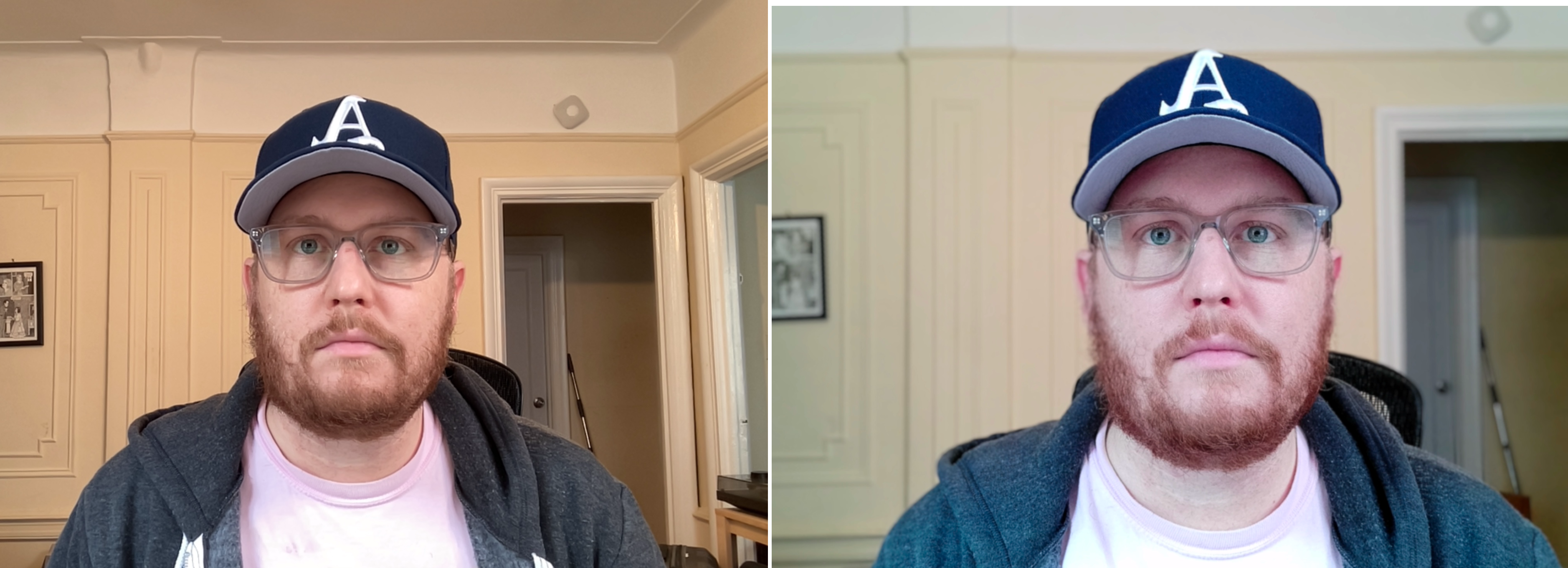 The camera employs an artificial bokeh effect, similar to the portrait mode you find on most modern smartphones (though the company says it developed its own, in-house). I’ve only got the slider about an eighth of the way at the moment, however. When it’s too intense, it tends to blur out my ears and the sides of my face, owing to the fact that there’s no depth cameras on-board. Opal says it experimented with a stereo camera for depth, but opted not to go with it for the sake of getting the device out in a timely manner.