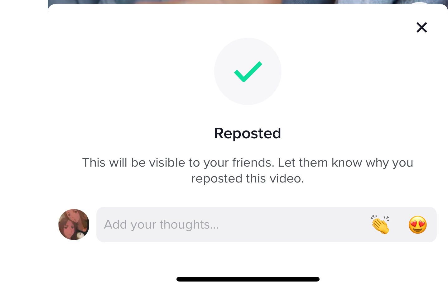 And if you change your mind about your Repost, you can tap into the Share menu and then on “Remove Repost” to undo your re-sharing. This will delete the message you’ve added, as well, TikTok notes.