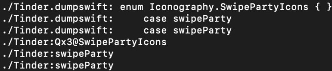 TechCrunch subsequently confirmed there are also references to Swipe Party in the Tinder app for iOS, according to an analysis by tech analyst Steve Moser (see images below).