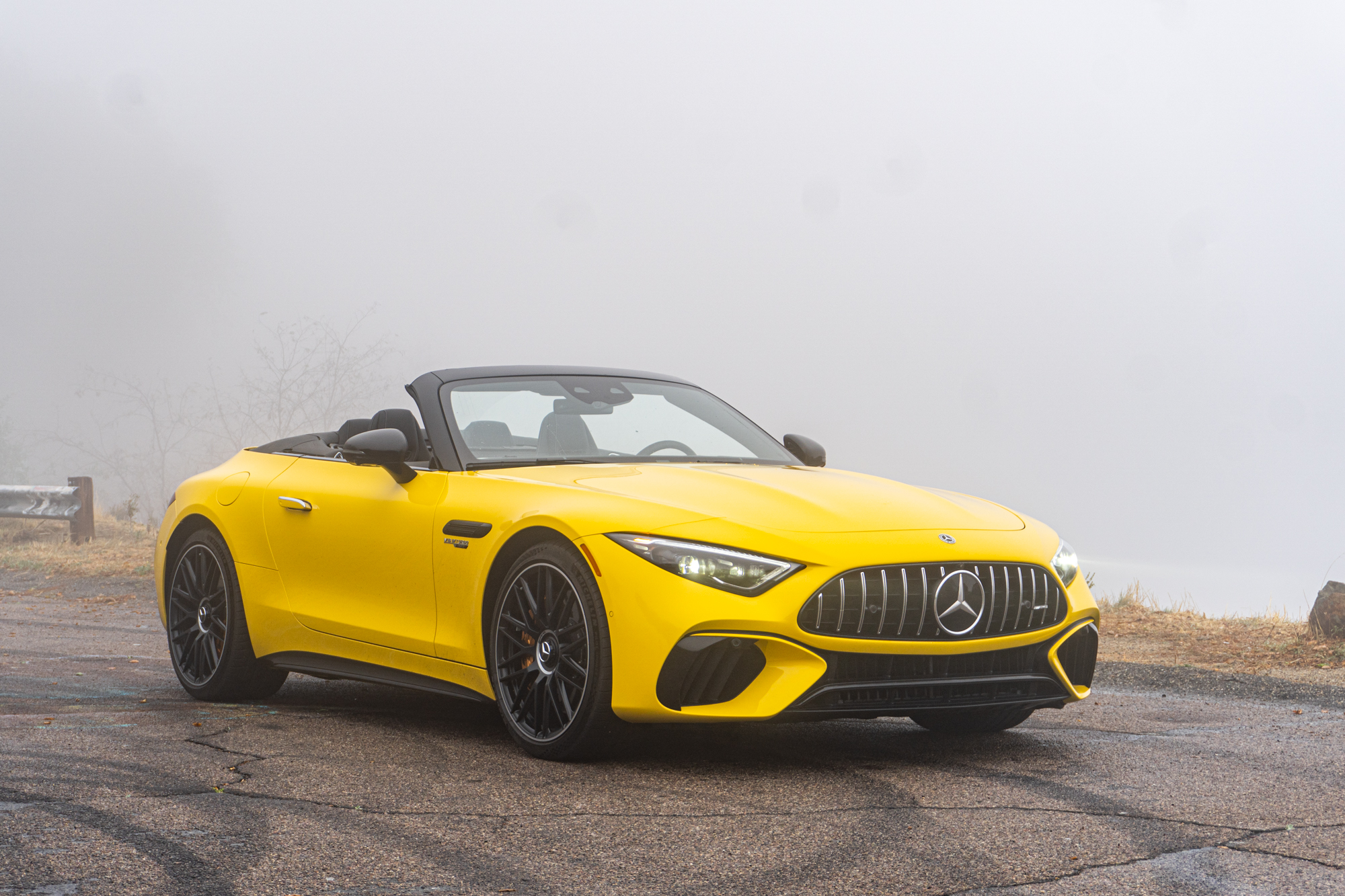 While the balance of luxury versus performance errs on the side of speed and handling thanks to up to 577 horsepower and 590 pound-feet of torque on the AMG SL 63 variant, even at slow speeds (thanks to the previously mentioned fog), the AMG SL delivers a rich top-down experience.