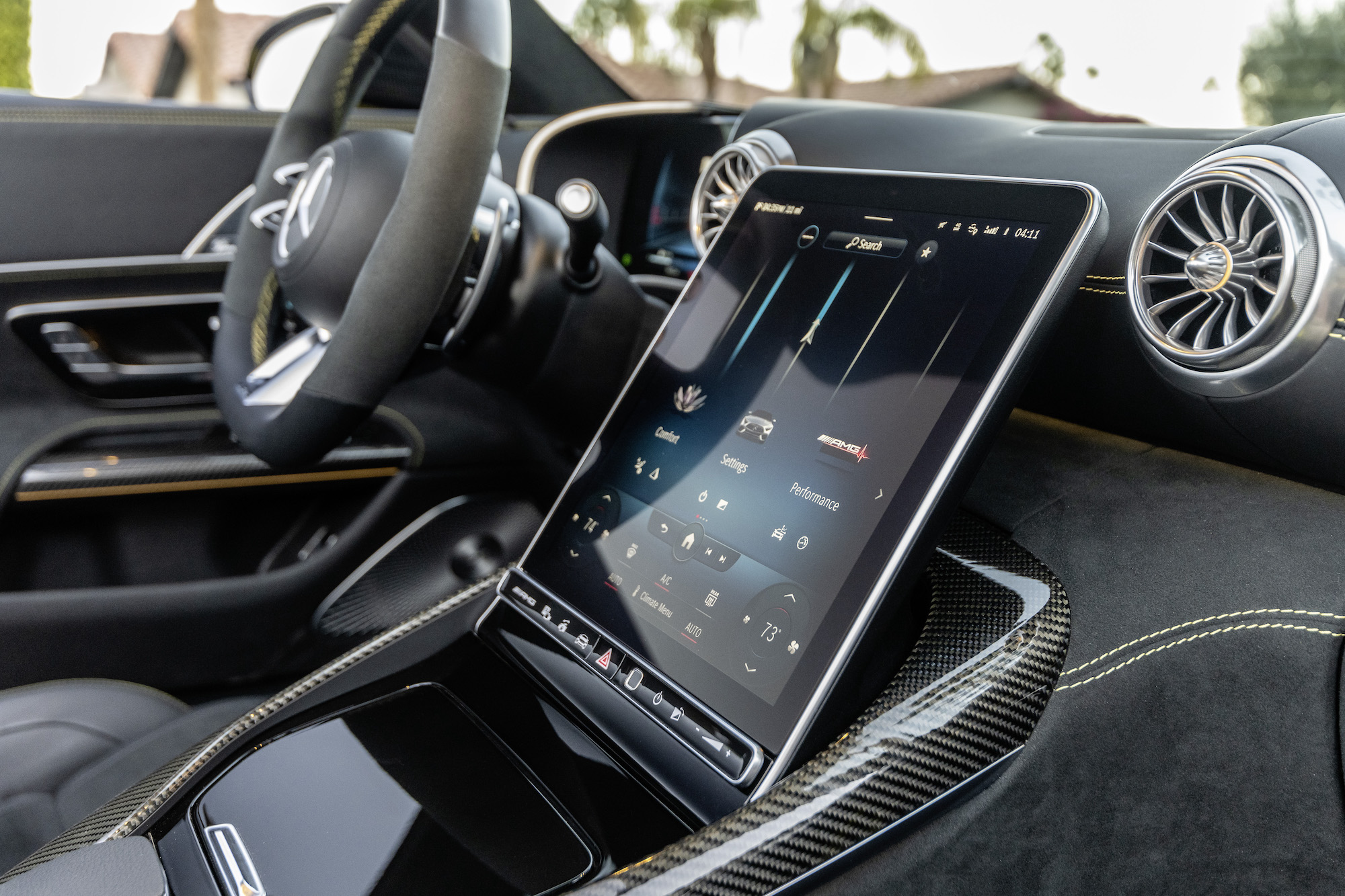 Like with the SL Roadster, the combination of voice assistant and Zero Layer make for an improved infotainment experience although, I’m still puzzled why Mercedes made the screen so wide it’s actually blocked by the steering wheel. Sure they moved all the widgets over, but it’s still an odd decision beyond the ability to say, “hey, look how big we made that display.”