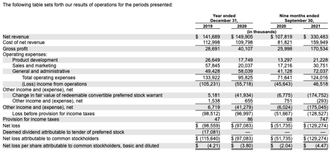 The reason is that the company’s net losses are effectively accounting deficits — they aren’t connected to its operating results. More simply, changes to the “fair value of redeemable convertible preferred stock warrant” liabilities pushed $175.0 million worth of accounting costs into the company’s 2021 results, meaning that instead of posting a tidy, positive net income figure, the company instead “recorded” a huge loss.