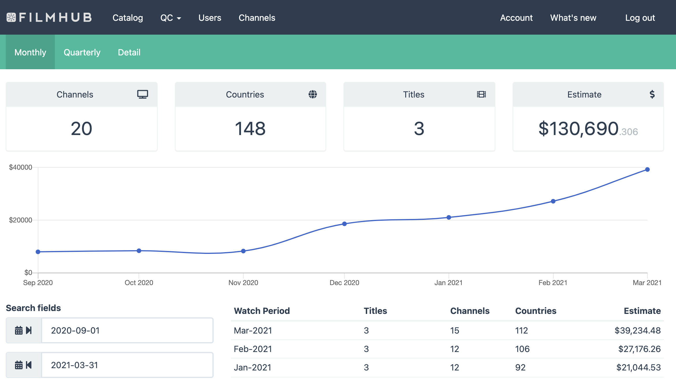 Filmhub begins by interviewing the filmmakers to ensure their content meets the technical specifications of the streamers it works with. The company will then get that content up on as many streaming services as possible using automated technology and its own sales team. Though its name is “Filmhub,” d’Escragnolle clarifies this content doesn’t have to just be full-length movies. It can also be serialized content like TV shows, shorts or any sort of professionally produced content. But its focus is on working directly with the filmmakers, he says.