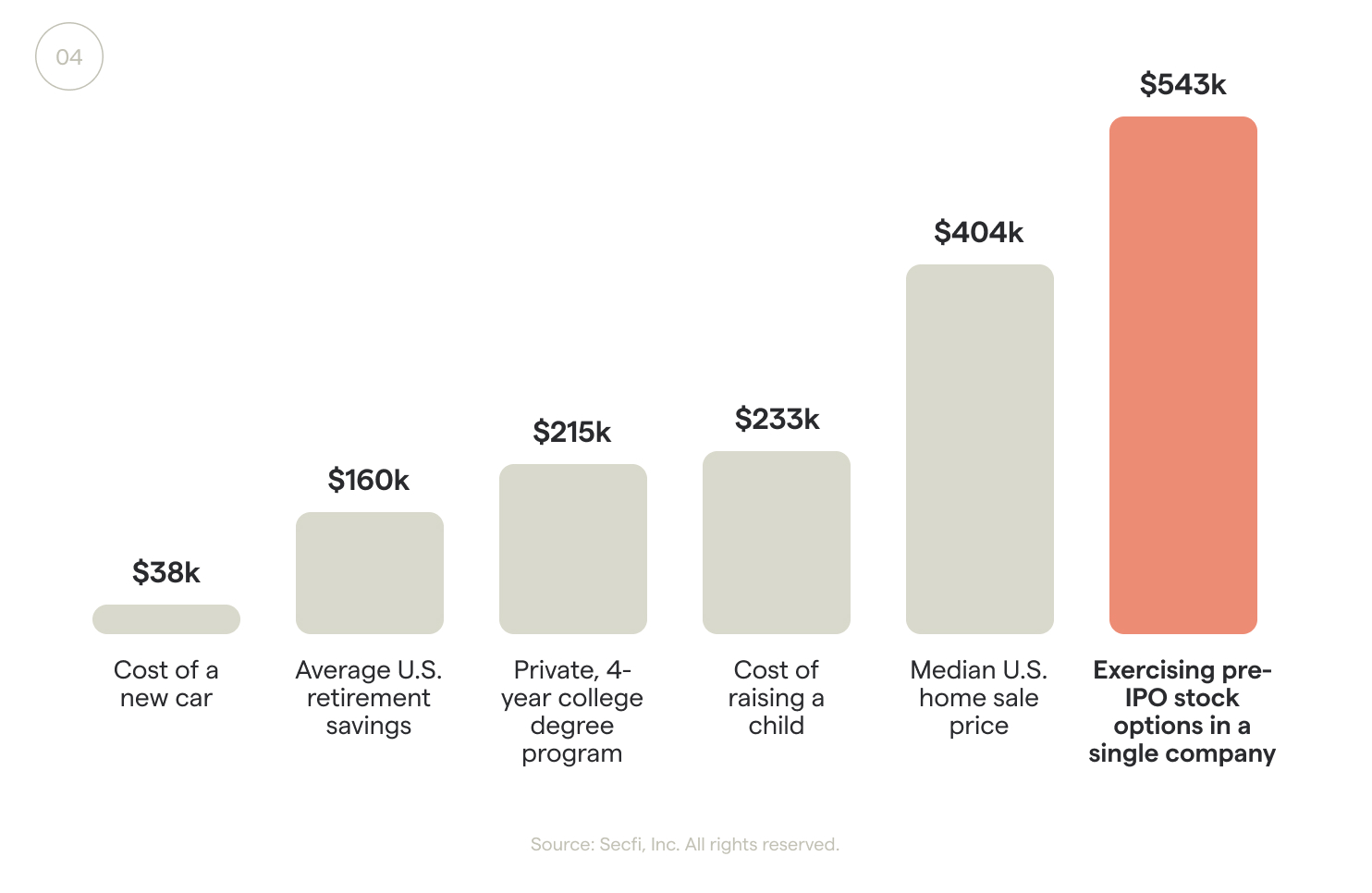 - On average, Secfi clients paid $543,254 in 2021 to exercise their pre-exit stock options (roughly double their annual household income), with taxes accounting for 73% of the cost.