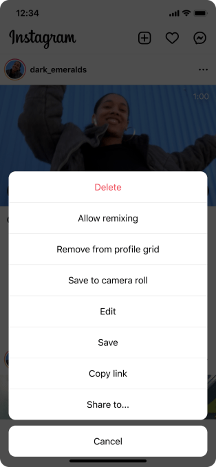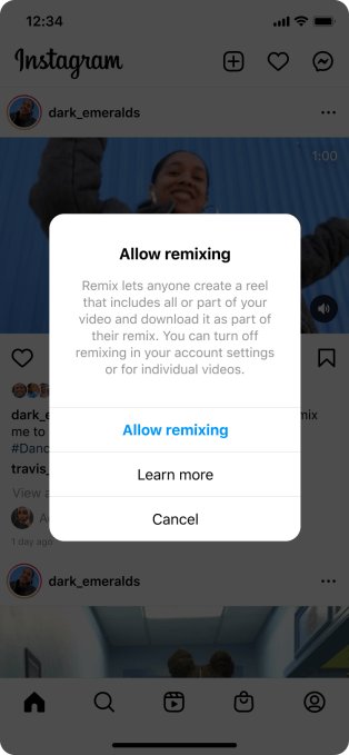 To use the new feature, users can tap the three-dot menu in the upper-right corner of any public Instagram video published after this update goes live. From there, you’ll choose “Remix this video” and record your answer or upload a video from your phone’s camera roll. Creators are able to remix either all or part of the other person’s video, and download it as part of the remix. The resulting remixed video will then be visible anywhere you share your reels.