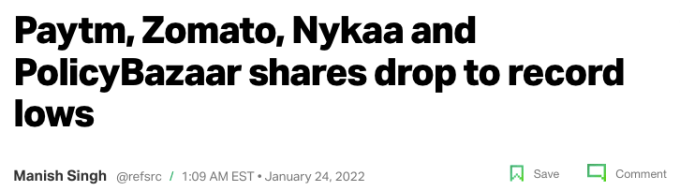 To be clear, we are not looking to pick on the Indian startup market — we’re merely pointing out that our ace reporter Manish Singh is covering the good and bad news that is landing in rapid succession. And the gap between public market fear and private market greed is getting sharper and sharper with each passing day of stock market selloffs.