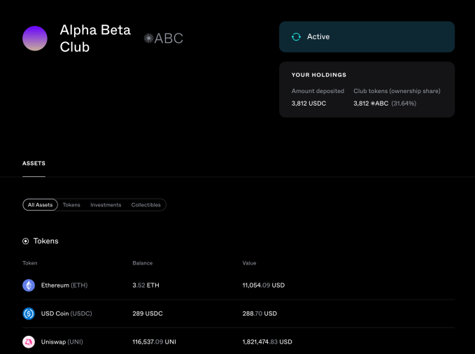 In addition to the setup guidelines, Syndicate offers a dashboard where users can peruse the holdings of their club and past activity.