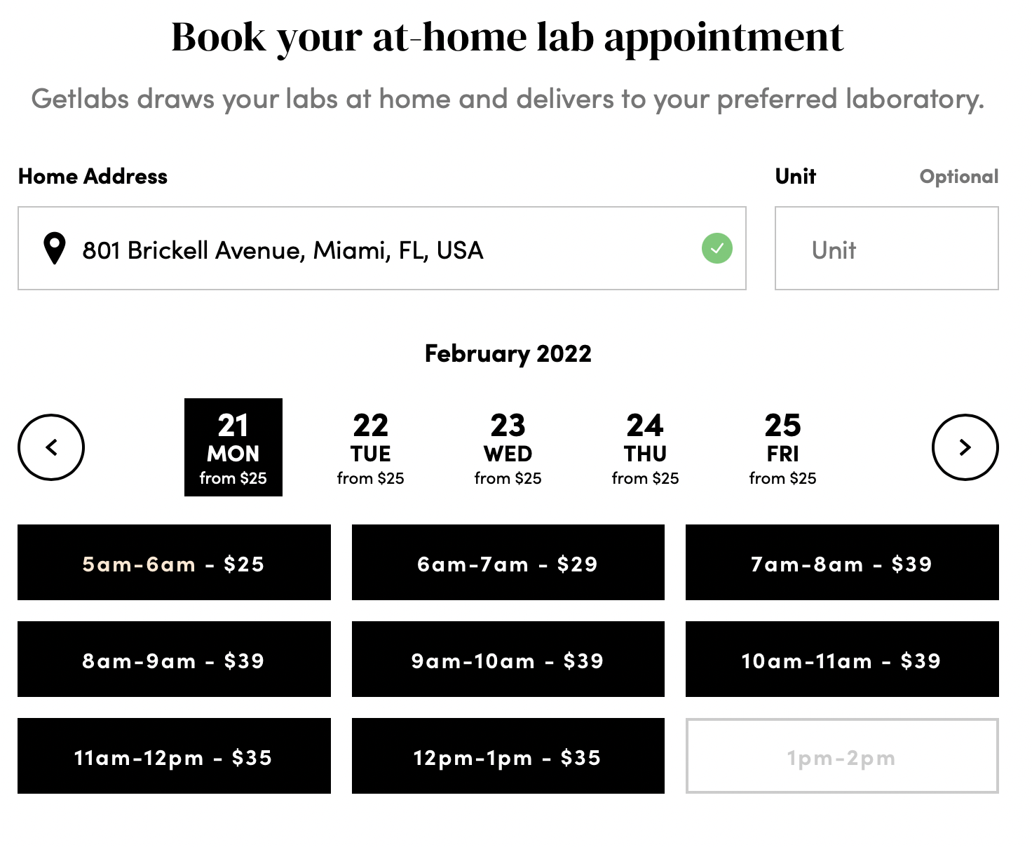 With that workforce, Michelson says the company has phlebotomists ready to serve about 45% of the U.S. population, up from about 6% just four months ago. The company aims to reach 60% coverage by the end of this year. One thing to note, though, is that this concentration of phlebotomists tends to be relatively urban-centric. (I typed in a few rural addresses in upstate New York as a test case, and Getlabs hadn’t reached the area. But there were a plethora of appointments available if I wanted a lab done in Brooklyn).