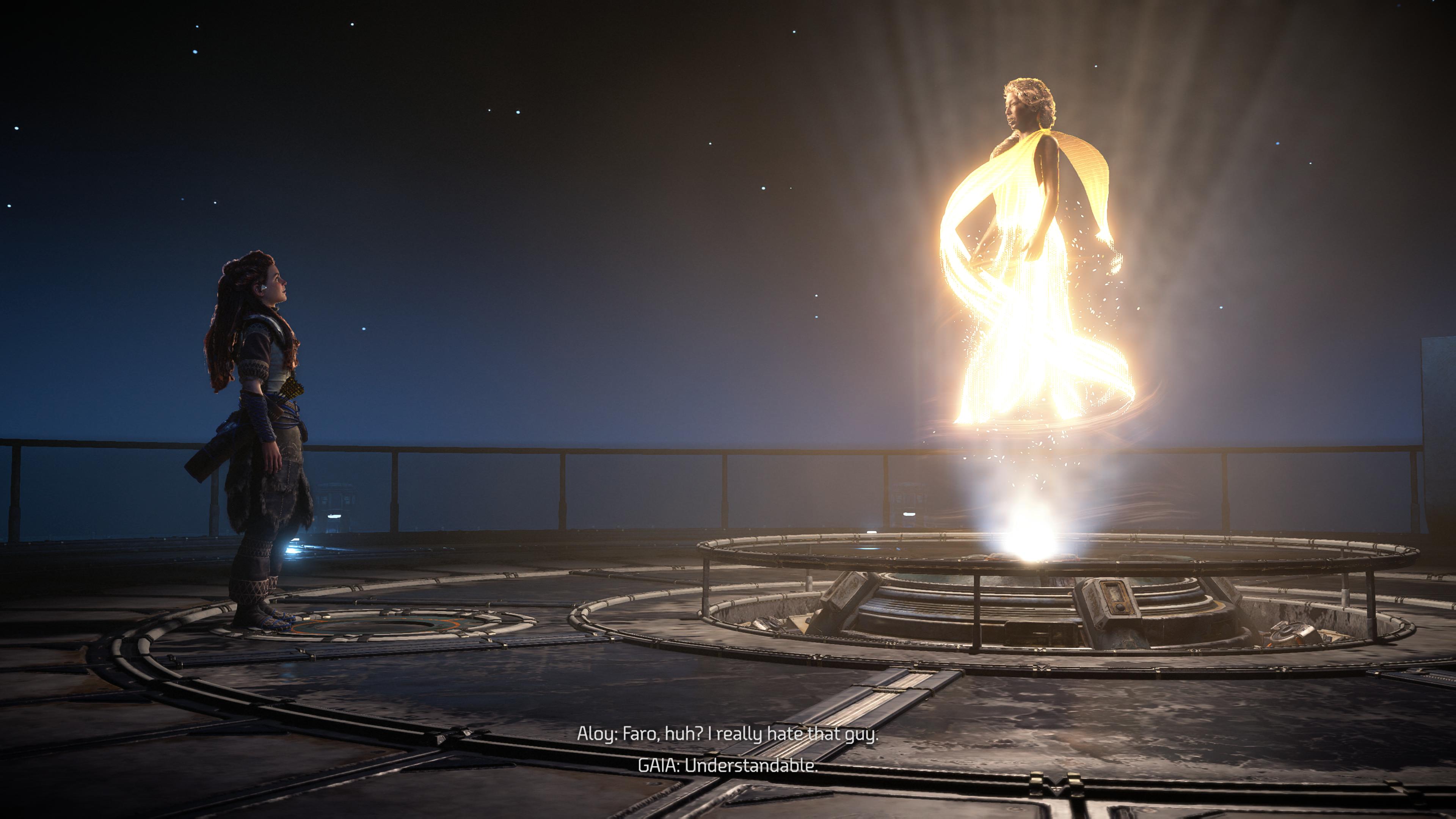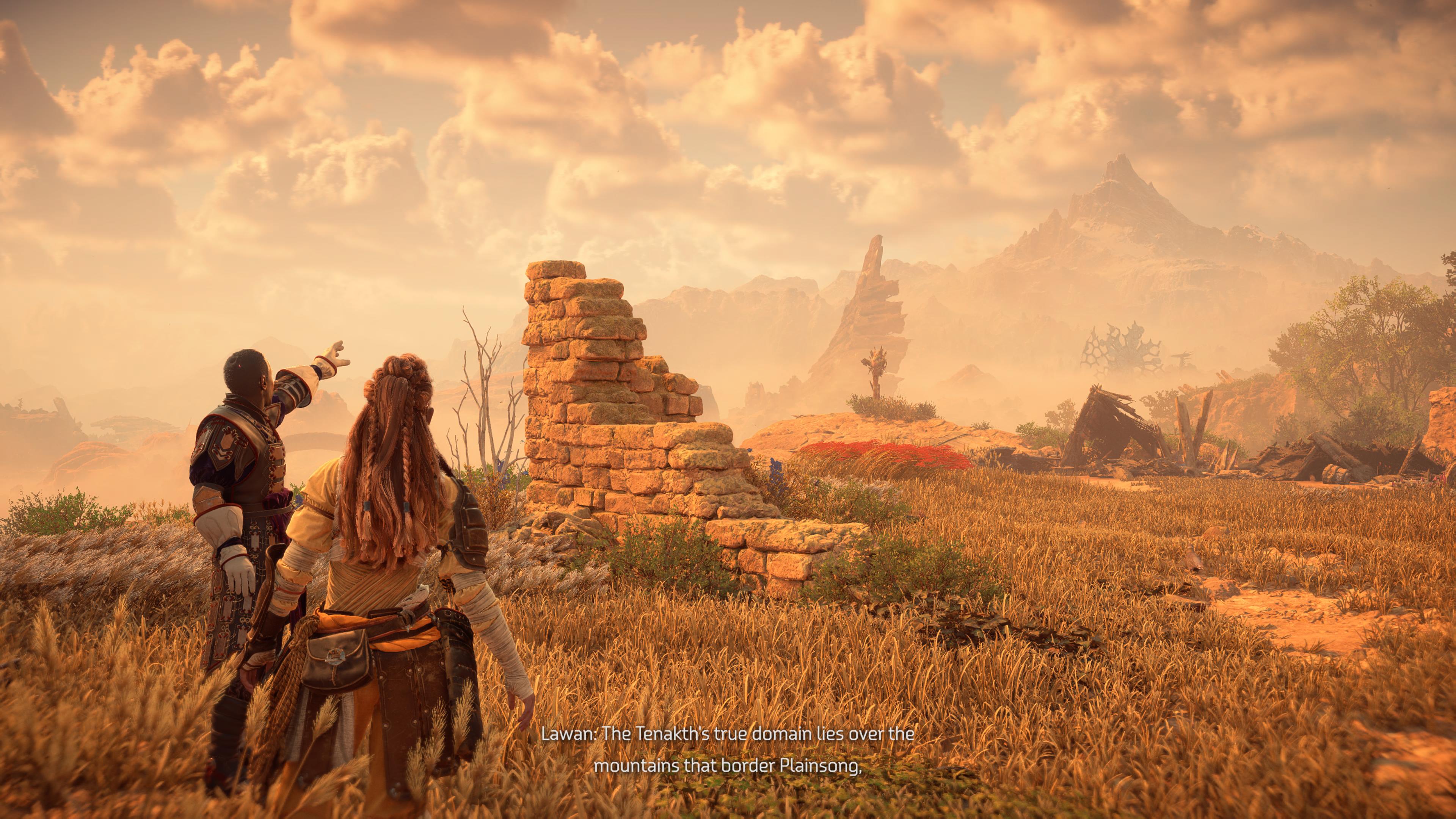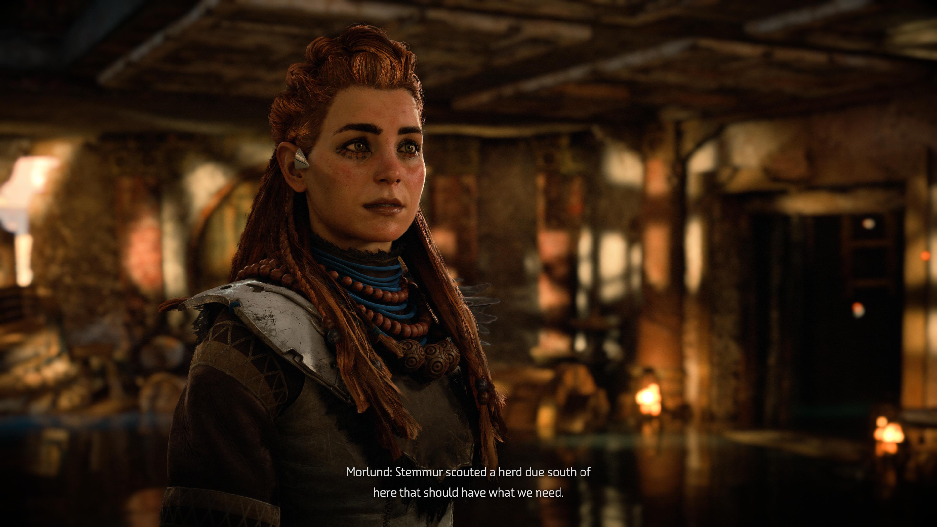 It’s not that these are all bad, exactly — like the others, they’re well acted and detailed, though indifferently written — but there’s a constant sense of “come on, let’s get on with it!” as yet another two-minute conversation begins between some town elders on how this flame-haired outlander doesn’t respect their traditions…but honored Makito, our people need such and such… and so on and so forth. Like a network TV show (and the original game, and most open-world games), HFW doles out its enjoyable main story beats a handful at a time between large portions of filler.