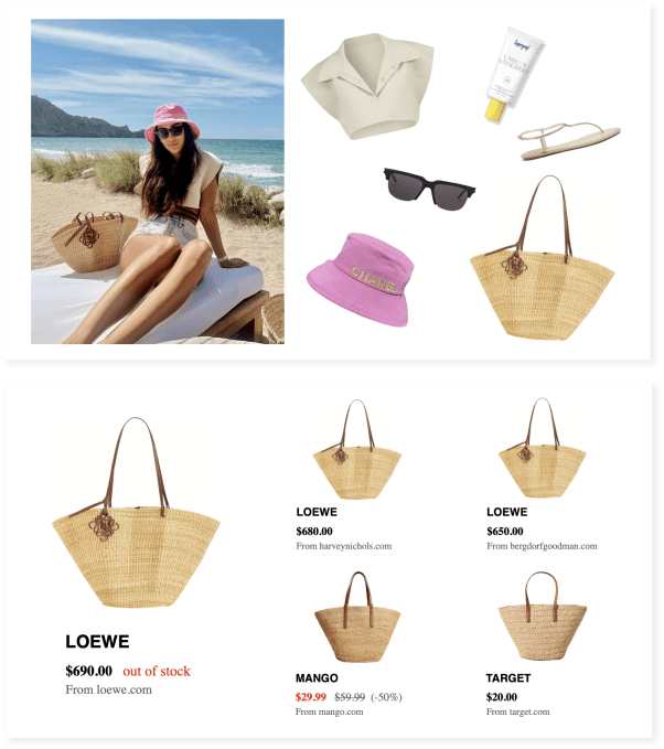 It can also suggest items to accompany the purchase that aren’t in the photo or video. For example, if the influencer was wearing a nice pair of sunglasses on a hot, sunny day, Voila might suggest a hydrating face mask alongside the sunglasses.