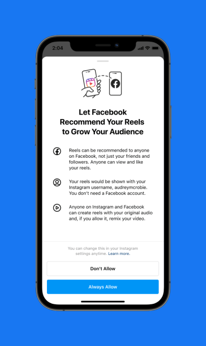 As a part of its broader effort to invest in Facebook Reels, the company will also make the short videos a bigger part of the overall Facebook experience. Creators in all supported markets, not just the U.S., will be able to share their Instagram Reels for recommendation on Facebook.