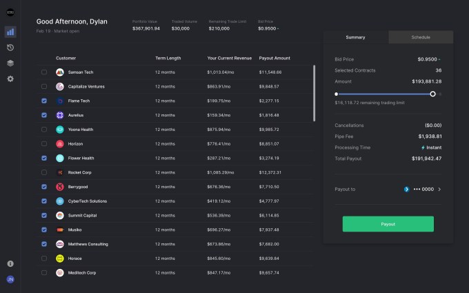 Specifically, the Miami-based fintech’s mission was to give SaaS companies a way to get their revenue upfront, by pairing them with investors on a marketplace that paid a discounted rate for the annual value of those contracts. Pipe describes its buy-side participants as “a vetted group of financial institutions and banks.” The goal of the platform was to offer companies with recurring revenue streams access to capital so they don’t dilute their ownership by accepting external capital or get forced to take out loans.