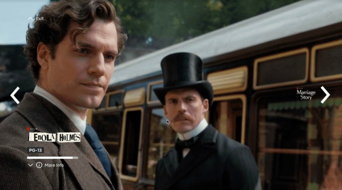 The opt-in feature will begin to appear on members’ homepages, somewhere around rows six through 12. In this case, the idea is to serve up the short videos at a time when users have been scrolling down looking for something to watch. And instead of navigating through the content vertically, as on the phone, the videos can be clicked through with your remote control via the arrow on the right side of the screen.