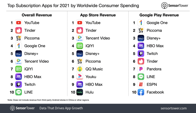 Other top-grossing U.S. apps included Disney+, HBO Max and Tinder. Worldwide, you can add Piccoma to that list.