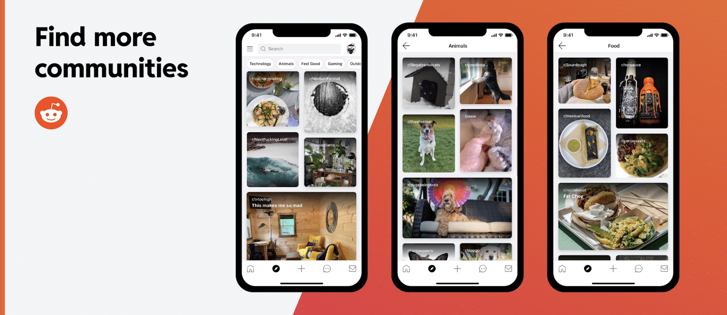 - Reddit debuted a major revamp of its mobile app for the first time in over two years with updated navigation and the addition of a new “Discover Tab.” The latter will offer personalized recommendations of new communities to join based on users’ current subscription, activity and general popularity.