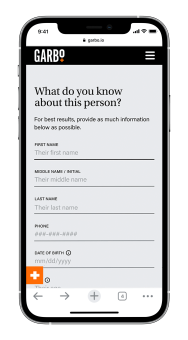 The in-app experience will direct users to the Garbo website where they’ll be able to fill in basic information about their match. The company says users typically only need the Match’s first name and a phone number to get started. However, if Garbo can’t locate a unique match, it won’t return any results and will instead prompt for more information, like the match’s age.