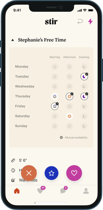 But despite “Stir Time” and the app’s focus on single parents — which at least eliminates the headache of being matched with people who aren’t interested in dating people who have kids — the app doesn’t offer a comprehensive set of features for parents.