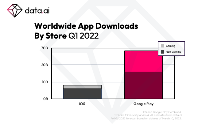 The global app market hasn’t yet peaked, according to the latest analysis of the iOS and Android app ecosystem out this week. Global app downloads reached 37 billion in the first quarter of 2022 across iOS and Google Play, up 11% year-over-year according to a report from data.ai (formerly known as App Annie). The largest markets for app downloads in the quarter were India, the U.S. and Brazil, while Mexico, Turkey and Brazil saw the biggest quarter-over-quarter growth, the firm said.