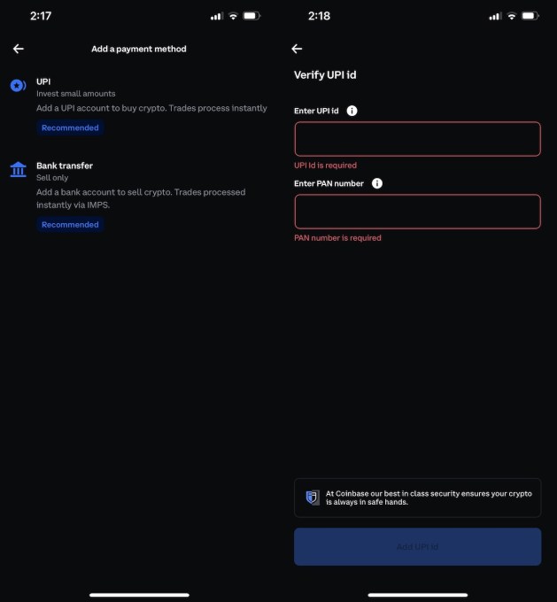 Coinbase is beginning to add support for payment instruments UPI and IMPS in India, making its crypto exchange broadly functional in the world’s second largest internet market for the first time in years.