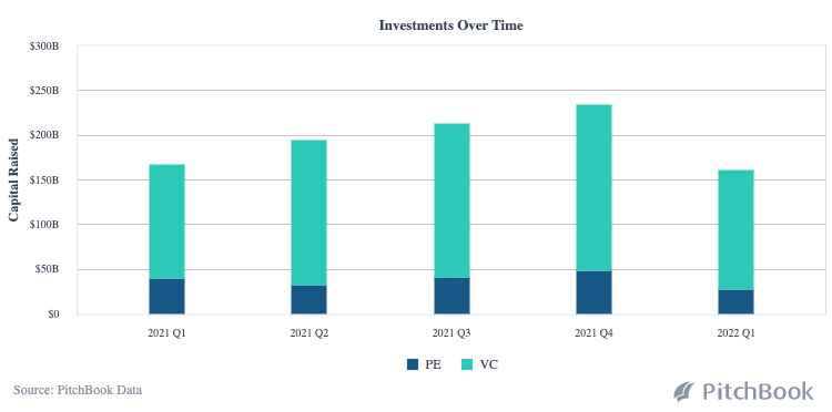 Naturally, the Q1 2022 data point will fill in somewhat over the coming days and weeks. But even if it does, the period may merely match its year-ago level, falling under the last three quarters’ tallies. In numerical terms, PitchBook has around $235 billion in total volume in its records for Q4 2021 and $161 billion in Q1 2022. That second figure is the smallest since at least Q1 2021.