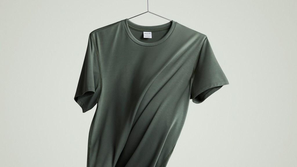 Amazon says the new athletic tees feature a soft, recycled polyester fabric with moisture-wicking and anti-odor properties. By comparison, Made for You’s original product was a casual tee that customers could choose in either soft, lightweight cotton blend fabric or a slightly stretchy, medium-weight fabric made of 100% pima cotton.