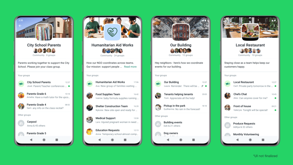 But while Facebook Groups may see some overlap with WhatsApp Communities, the two are not designed for the same purpose. Facebook’s product is often used by larger, otherwise disconnected strangers who share a common interest. WhatsApp Communities, meanwhile, focus on more private and personal groups — including those where members may already be connected in other ways, including in the real world.