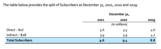 How reasonable is that expectation? It feels a little aggressive. Observe the following table from the company, detailing its subscriber mix over time, focusing in particular on the B2B category: