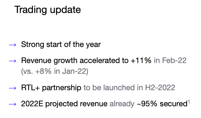 Deezer grew 6% in 2021 and expects 14% growth in 2022. It anticipates scaling that figure to 24% in 2023. So not only does the company expect to boost its growth rate this year, it anticipates adding another 10 percentage points to the figure the year after, reaching a growth pace some 71% faster than it expects to manage this year.