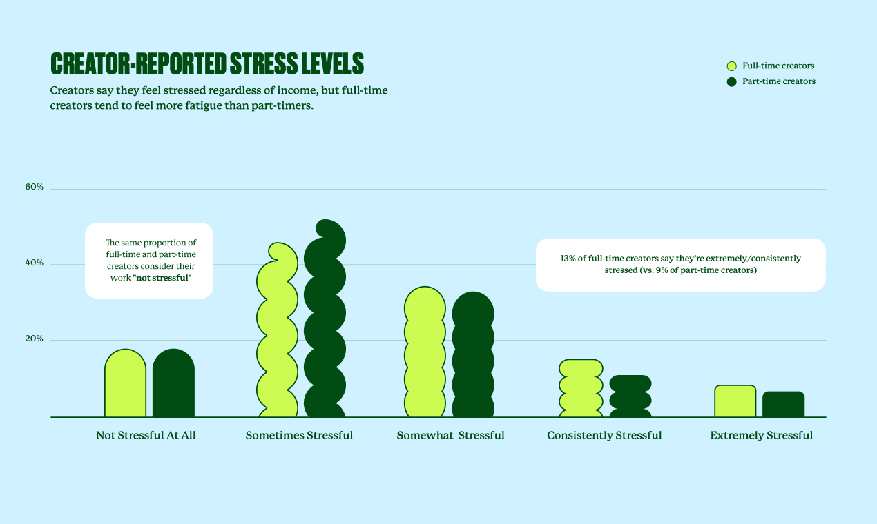 It’s easier than ever to become a creator — per Linktree’s numbers, over 200 million people could be classified as a creator, which the company defines as anyone who uses their influence and creativity to monetize their audience, regardless of which platforms they use. But the study found that 39% of creators — regardless of their income level — reported they consistently must take measures to reduce stress; in fact, 13% of full-time creators say they’re extremely stressed.