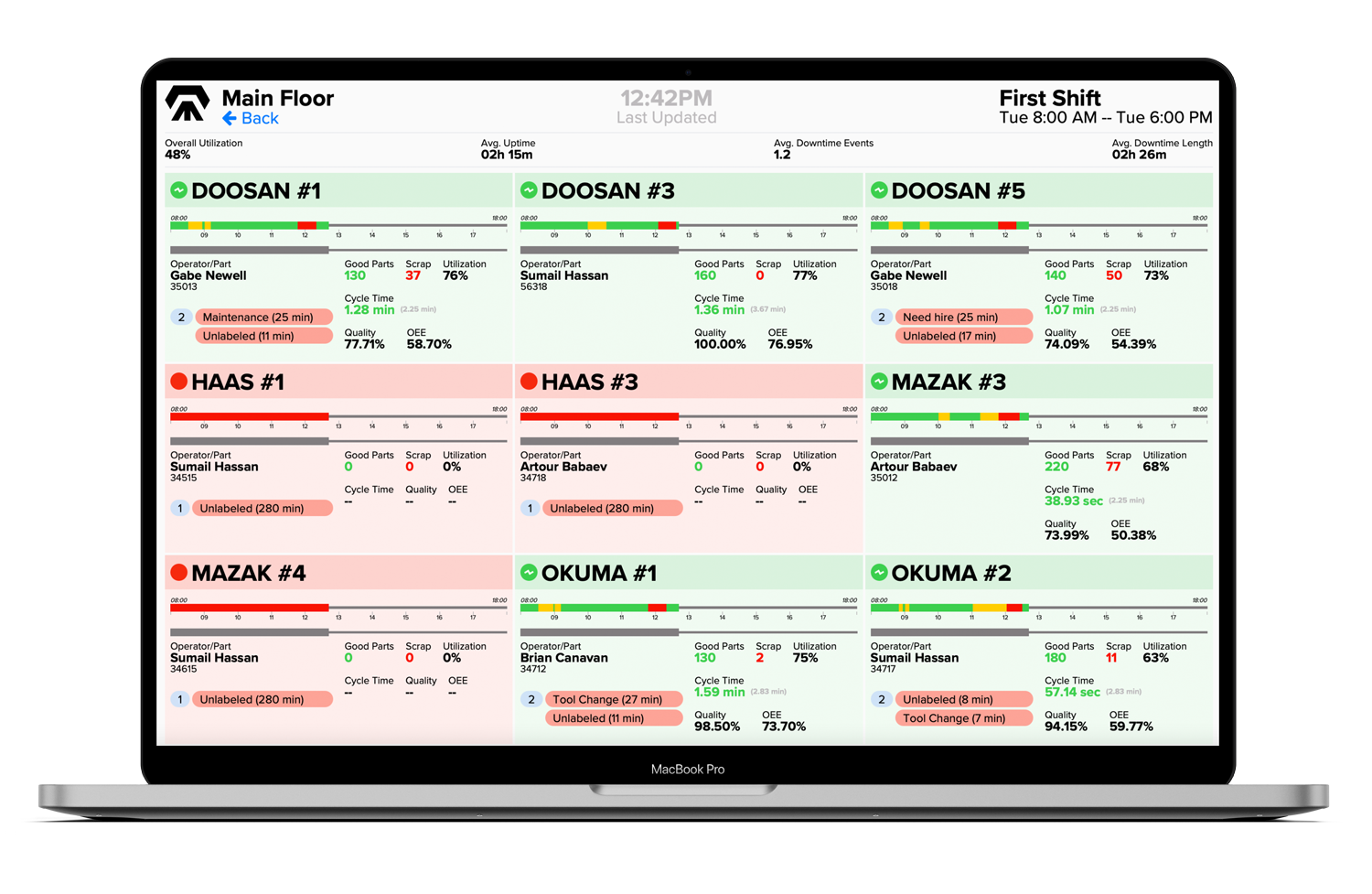 From there, the system takes around a week to fully calibrate. After that on-boarding period, all of the pertinent information is available in a single dashboard, including the machine’s status and the number of parts it’s output. The insights it collects ultimately aren’t as deep that those that might come from a new machine with built-in sensing, but it’s a bit of a tradeoff that comes with the ease of installation and price. Effectively it’s a low barrier of entry for digitizing factories’ existing systems.