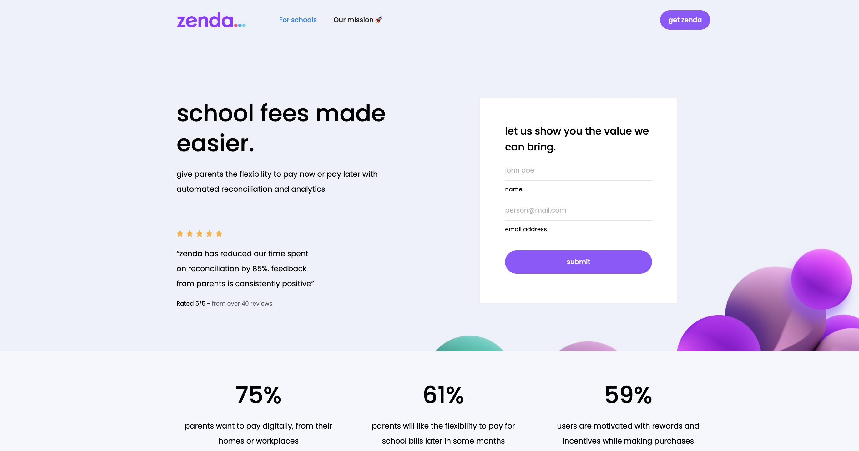 Through its app, Zenda allows parents to pay fees directly to schools, all while streamlining collections by enabling schools to accept and manage payments online. This means that parents no longer need to provide bank deposit slips as proof of payment because all transactions on Zenda happen in real time. The startup also has an embedded financing option that extends tuition fee credit to parents on a flexible repayment structure.